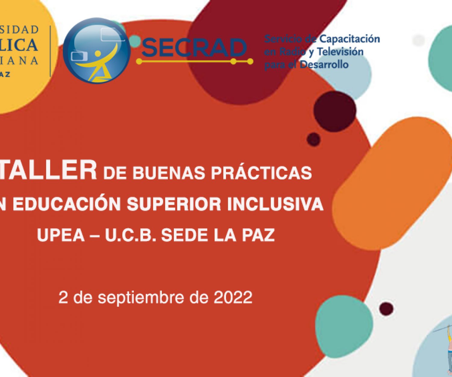 noticias 07 Sep 2022 “TALLER DE BUENAS PRÁCTICAS EN EDUCACIÓN SUPERIOR INCLUSIVA” UPEA – U.C.B. SEDE LA PAZ La Sede La Paz de la Universidad Católica Boliviana “San Pablo” recibió este 2 de septiembre a una nutrida delegación… Marcelo Bustillos