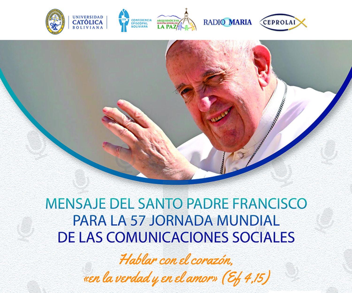 noticias 18 May 2023 ACTO ACADÉMICO DE PRESENTACIÓN DEL MENSAJE DEL PAPA A LA JORNADA MUNDIAL DE LAS COMUNICACIONES SOCIALES ACTO ACADÉMICO DE PRESENTACIÓN DEL MENSAJE DEL PAPA A LA JORNADA MUNDIAL DE LAS COMUNICACIONES SOCIALES Este 18 de mayo,… Marcelo Bustillos