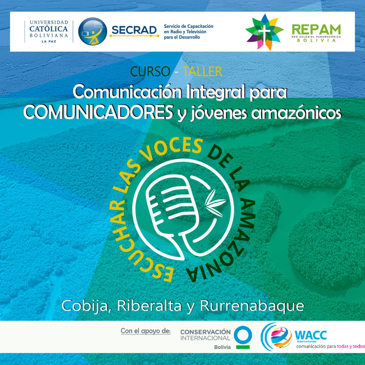 La Universidad Católica Boliviana “San Pablo” y su Servicio de Capacitación en Radio y Televisión para el Desarrollo (SECRAD, Sede La Paz), en coordinación con la Red Eclesial Panamazónica de Bolivia (REPAM-Bolivia), con el financiamiento de la Asociación Mundial para la Comunicación Cristiana (WACC) y el apoyo de Conservación Internacional Bolivia (CI), dando respuesta al cuidado de la naturaleza y la protección del medio ambiente, y orientaciones de la Iglesia Católica, convocan a los interesados a postular al Curso Taller: “Escuchar las voces de la Amazonía: Comunicación Integral para Comunicadores y jóvenes Amazónicos” que se desarrollará de manera virtual y presencial en las ciudades de Cobija, Riberalta y Rurrenabaque.